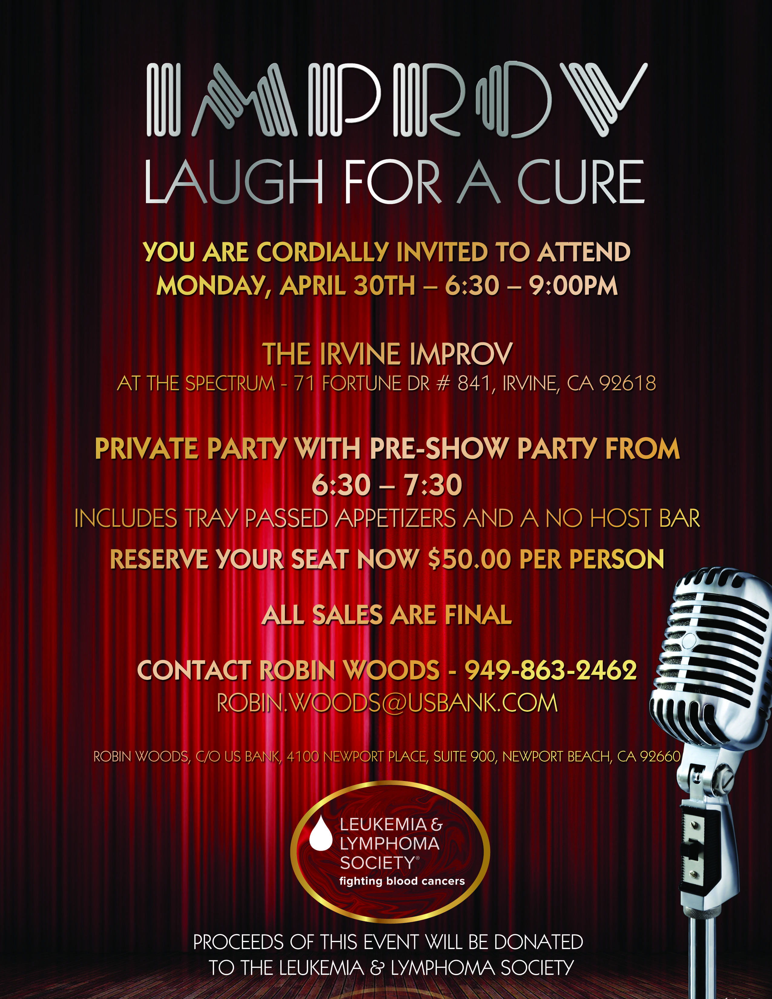 Laugh for a Cure at Irvine Improv 6:30-9:00pm PCC